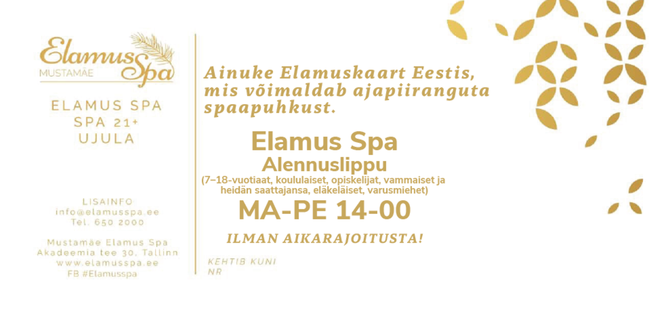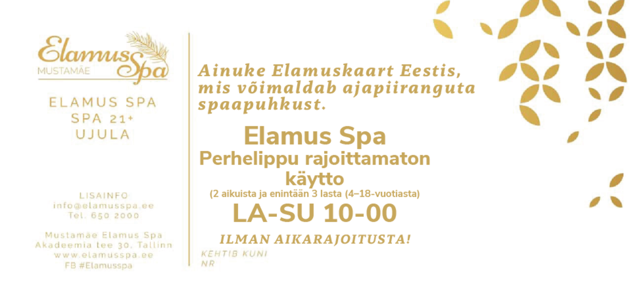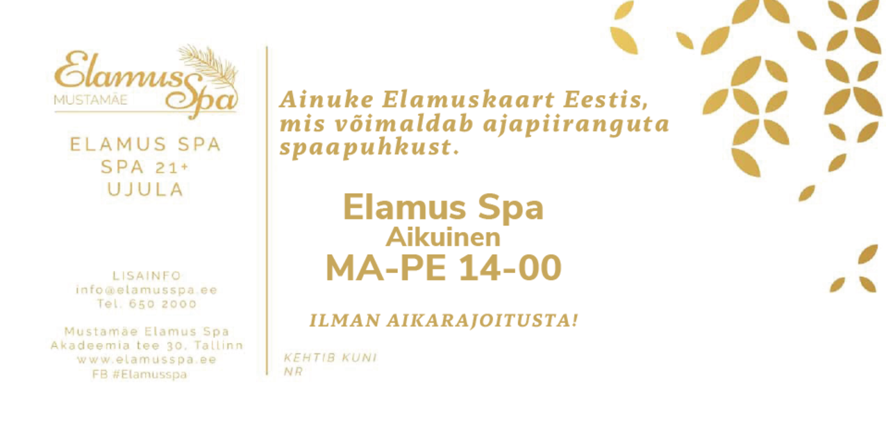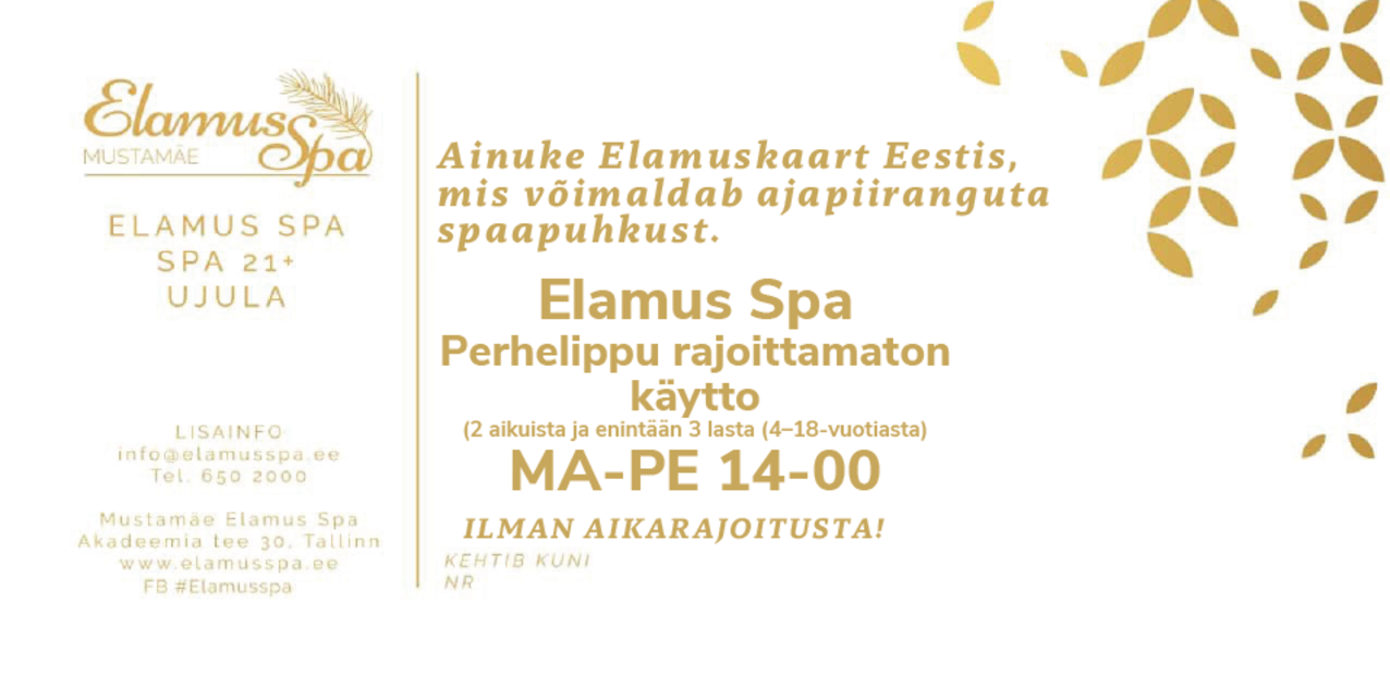 22 omanäolist sauna; igapäevased saunarituaalid; rohked vee-alad, väliterrassid sauna ja mullivannidega; 6 rajaga 25 m sportbassein;