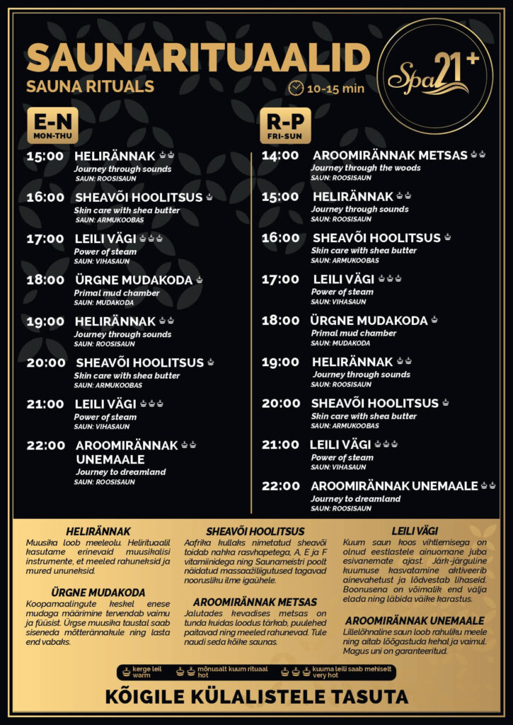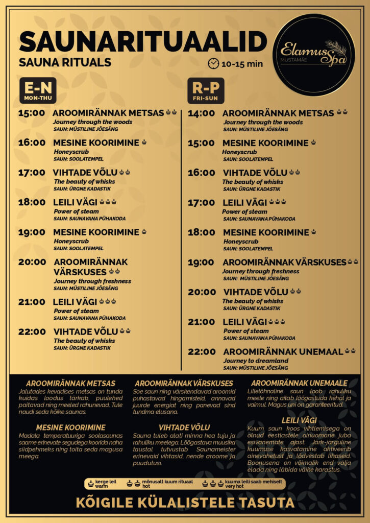 Elamus SPA-s on lai valik saunarituaale, mis külastajatele on tasuta. Naudi ja võta kaasa nippe, et ka kodune saunaskäik põnevamaks muuta!